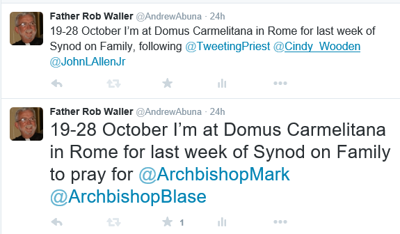 18 OctThere is a three-week Synod on the Family taking place at the Vatican. I just want to be in the neighborhood during the last (third) week of the synod and for a few days after the closing of the synod. So, tomorrow I leave Dayton for the flight to Rome, coming home on the 28th.