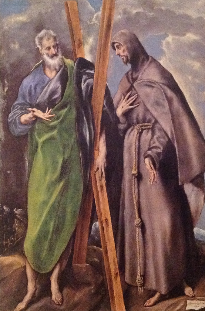 El Greco’s figures are elongated and rather weird (right, Celia?), but isn’t it way too much fun to see “our” Andrew and Father Jim Bok’s Francis in the same painting, conversing. Notice their hands. What do you think Andrew is saying?