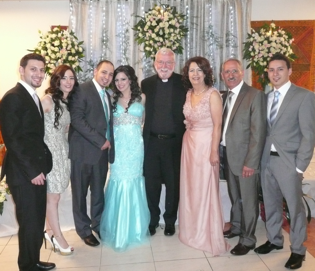 In planning the trip to Nablus, I made sure that Waseim understood clearly that we needed to leave Nablus in time for me to get back, showered and dressed for Nasri’s engagement party. Nasri is Ranim’s brother, to be engaged to his fiancé Rula. Engagement among the Palestinians is real big. It is all very formal and very public. The engagement party is the responsibility of the boy’s parents. The local priest comes and does a ceremony. There is a blessing and exchange of rings, to be worn on the right hand until the wedding. A couple hundred people come to the rented hall, with just a three days notice, all dressed in their best. All are to be present and seated before the boy comes in with the girl, in a very formal entrance. There is music and a little dancing, a bit of champaign, a piece or two of candy, a piece of cake, and everyone goes home. All is over in a couple hours. The boy goes home to his parent’s house; the girl goes home with her parents, which is where they stay until the wedding, however long that might be. Being engaged, they are now permitted to date and be seen alone in public. “We don’t do things the way they are done in America,” I have been told frequently. During the party Ranim was constantly watching hand checking in on me. I sat with her soon-to-be fiancé, Amir, and his parents Kane brother. He and they were welcoming and kind. You may have read in a previous post that I told Ranim that I hated him even before I met him. I told Ranim after the party that I am worried, because I am beginning to like Amir. She smiled, and said she hoped that one day I will love him. Obviously, she does.