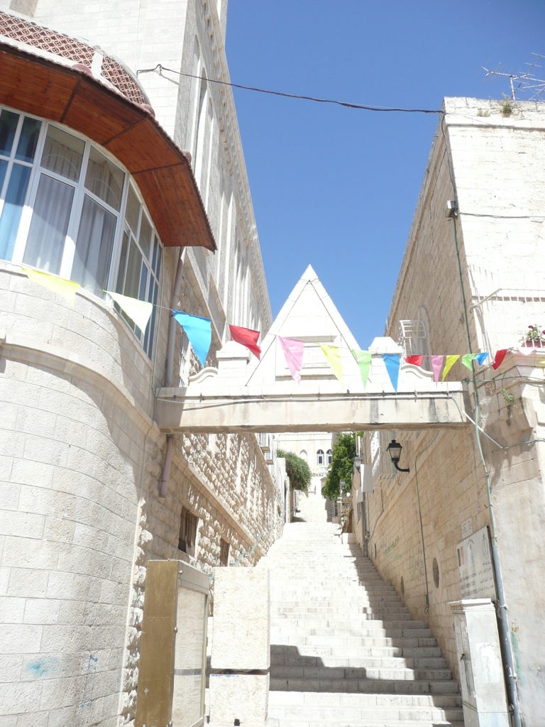 Up these 92 steps to say hello to some friends that I made a few years ago. The whole world could certainly learn something from the Palestinians about welcome and hospitality. The fact that it was a surprise, they did not know I was coming, they didn’t even know that I was in the country, and it has been a couple years since I have seen them, made no difference whatsoever. Just a quick hello and visit would not do. I was to have lunch with them, of course. When moving toward the table, one of the women apologized for using plastic plates and flatware for lunch, “We have no water.” The Israeli government controls how often the people of Bethlehem are allowed to buy water. It had been twenty days since they last got water. I noticed that the only small glass of water was at the place where they invited me to sit down. Stupid me, it did not dawn on me until later what they had done.