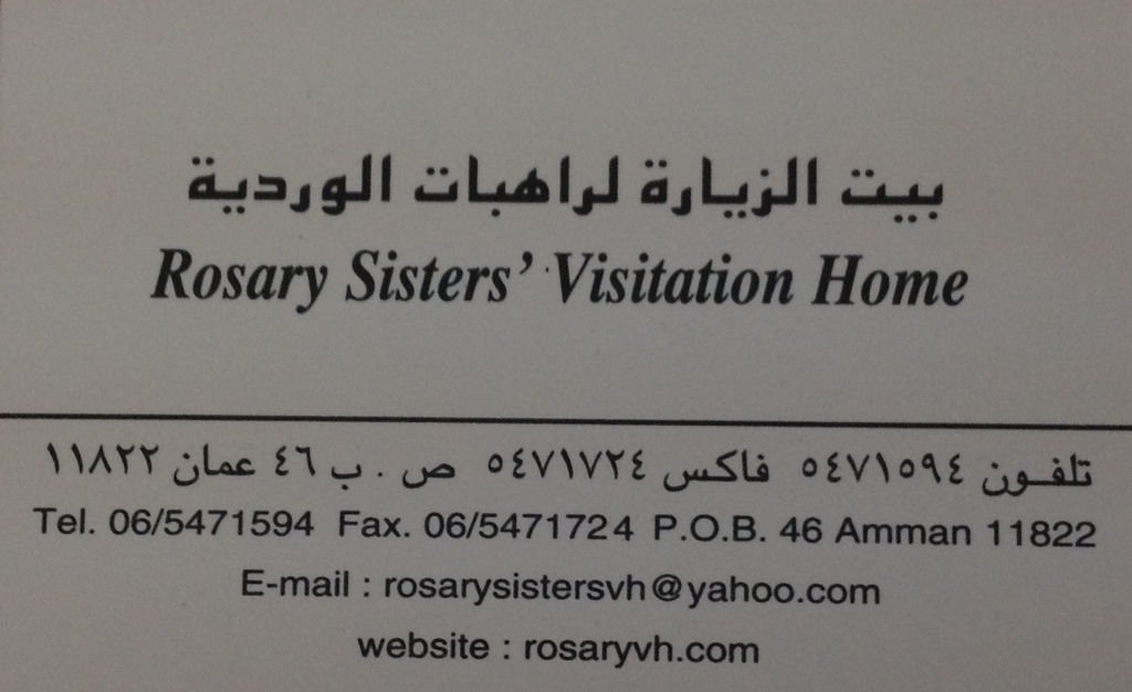 20 JunNow that yesterday is yesterday, it is does not seem so bad. Yesterday looks quite doable the day after. True of many days, right? The most tense moment yesterday was when the taxi driver, who did not speak English and got frustrated because I was not able to speak Arabic to tell him where I wanted to go, dumped me in town center of Fuheis, after laughing with a police officer who also could not speak English – and started to pull away with my luggage still in his trunk, until I beat on the back of the car. In my journal on the day before I had written: “Little nervous about crossing the bridge. Never crossed northern bridge. Doing it alone and by myself. Everything else has gone splashingly well, this should as well. Help has always come at the moment needed.” I was really nervous now! The crossing was over, but now I stood alone, not even knowing I was in the right town. I tried everything I could think of: “Abuna, church, convent, sisters, nuns, ordination, visitation home, holy rosary sisters.” Nothing worked. But as before, step by step, getting enough for the next step, four connections later I was told the young man with whom I was speaking was the “brother of Sleiman,” the deacon whose ordination I will attend today, my reason for coming here to the Holy Land for these dates. “Brother of Sleiman” said,”Welcome.” Without much emotion or expression on his face, he said something in Arabic to my taxi driver and walked away from the car. Twenty minutes later I saw this sign and said, in one of the few Arabic expressions I know, “Thanks be to God.” Finally the driver understood something I said – and I was home.