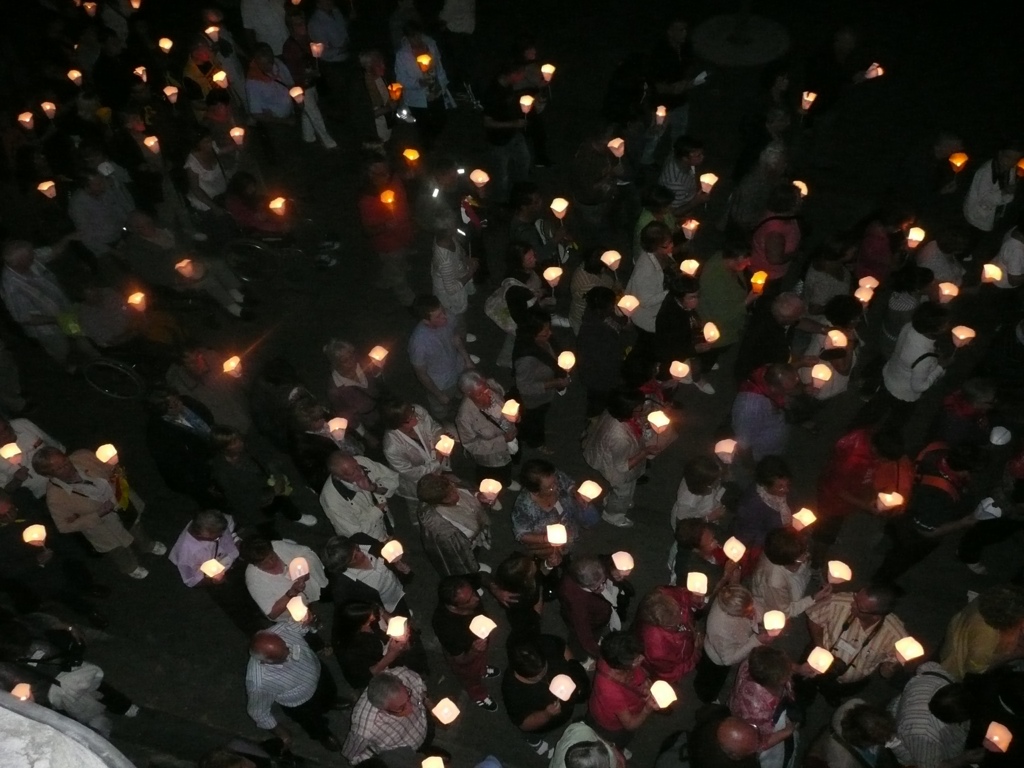 26 SepFollowing the statue of Our Lady of Lourdes and the sick are the rest of us, raising our candles high at the singing of the “Glory be to the Father,” and for the frequent and moving singing of “Ave, ave, ave Maris,” each time getting louder and louder, it seems, as the procession moves on. Verses of the Lourdes hymn are sung in different languages, as people of all languages join in the common Latin, “Ave.” Want to hear it, go my YouTube channel’ MilfordAndrewPastor.”